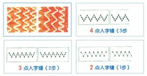 7.Both of  machines are with 3 cams to form 3 different standard zigzag stitches(1 step 2 points zigzag, 2 steps and 3 point zigzag, 3 steps and 4 point zigzag).